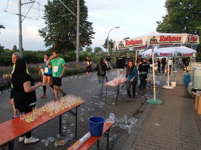 Hans-Reschke-Ufer 20.39 Uhr / Km 18,0 Nächster Verpflegungsstand. Und diesmal gab es auch von allem genug und das ganz ohne Drängelei. |