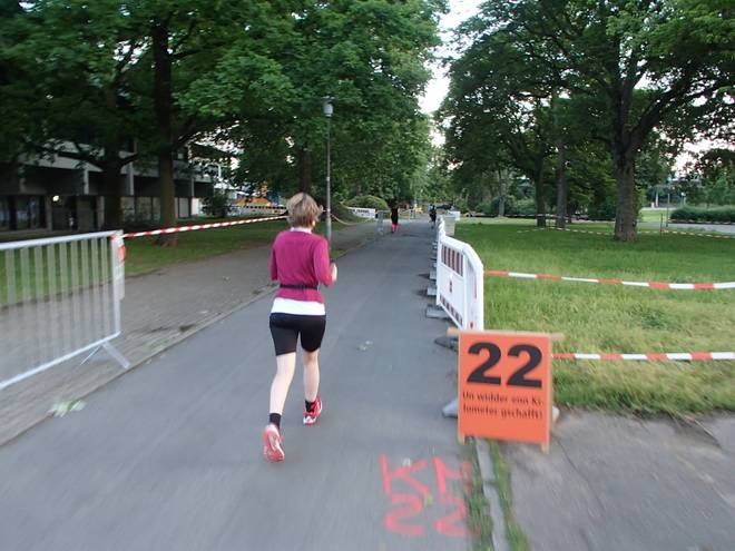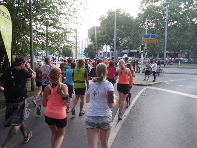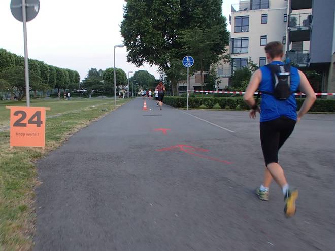 Rheinpromenade 21.19 Uhr / Km 24,2 Es war ein bekanntes Spiel. Auch ohne große Steigerung des Tempos sammelte ich nun Läufer ein. |