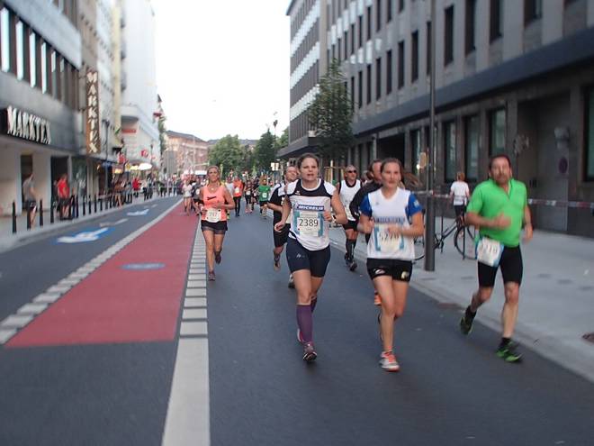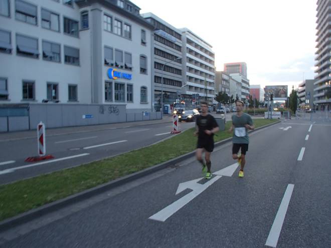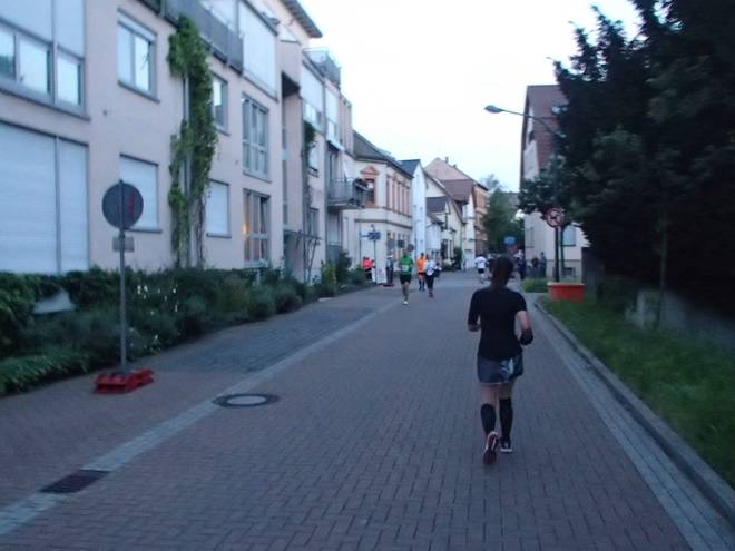 Erbgasse 21.38 Uhr / Km 27,6 Vermehrt kamen nun Läufer entgegen. Aber so richtig voll wurde es nicht mehr. |