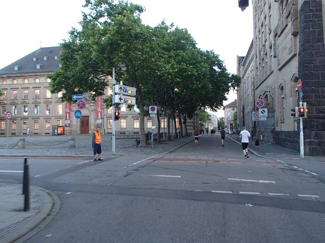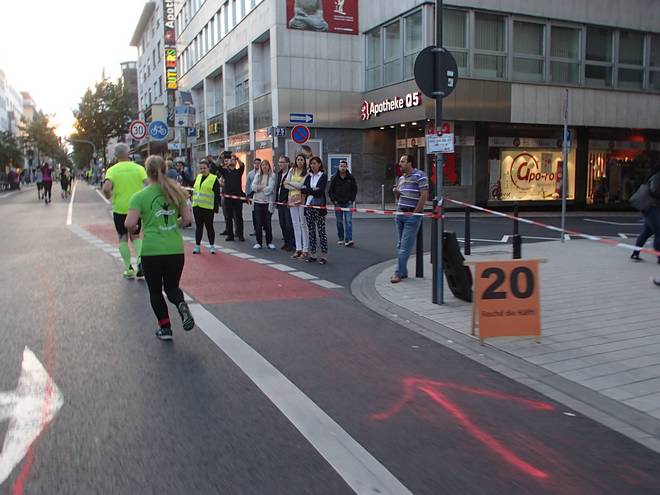 Friedrichsring Friedrichsplatz 20.50 Uhr / Km 19,6 Hätte ich hier nicht nach rechts sondern nach links geguckt, dann hätte ich das Ziel sehen können. Ich war nur 100 Meter davon entfernt. Mal wieder hatte ich den Streckenplan nur oberflächlich begutachtet. Foto: go4it-foto |