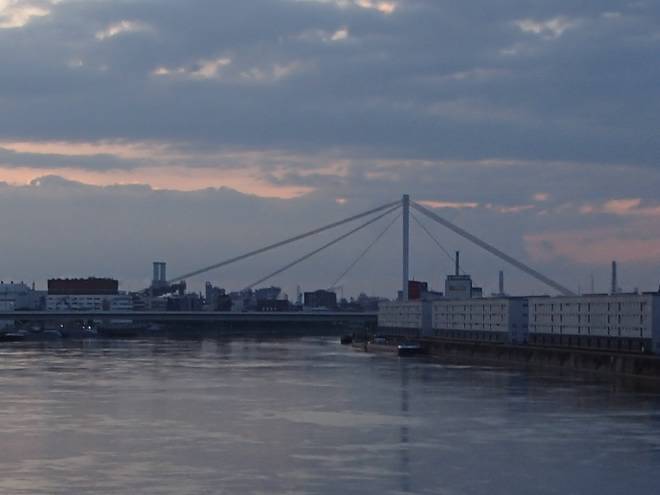 Konrad-Adenauer-Brücke 21.09 Uhr / Km 22,8 Am Ende kamen wir aber auf die Konrad-Adenauer-Brücke und querten den Rhein. |
