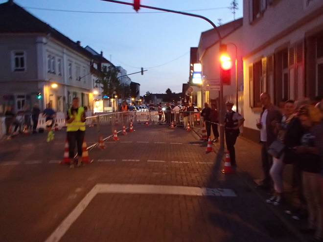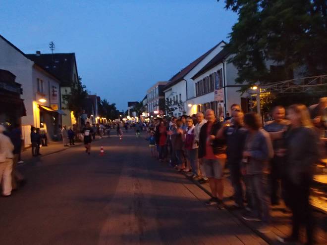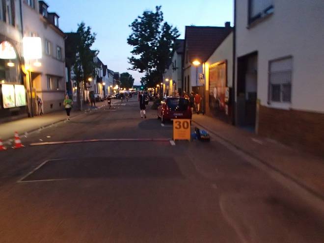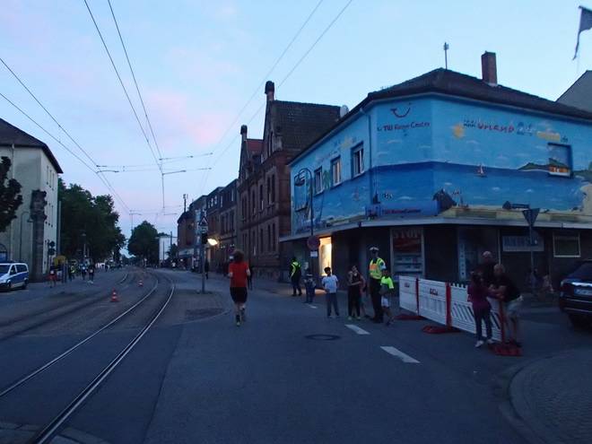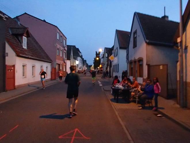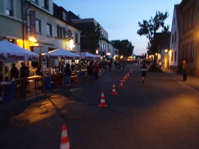 Hauptstraße 21.51 Uhr / Km 29,8 Nach viel langer und vor allem langweiliger Straßen saßen hier im Stadtteil Rheingönheim wieder ein paar Leute an der Strecke. |
