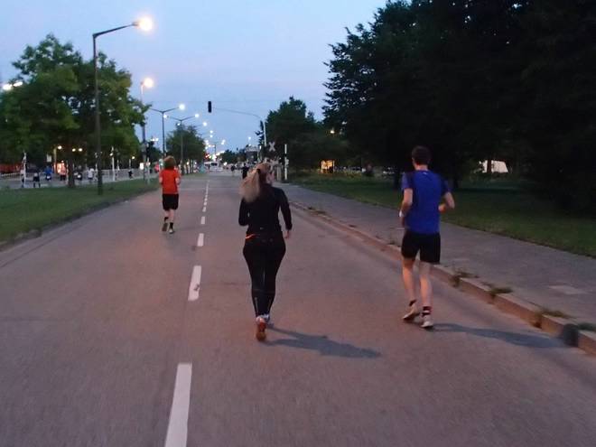 Erich-Reimann-Straße 21.34 Uhr / Km 26,9 Der vierte Staffelwechsel. Da würden gleich wieder ein paar schnelle Läufer auf die Bahn kommen. |