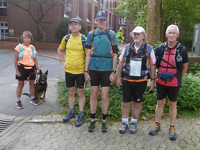 Lüneburg Auf dem Michaeliskloster 8.01 Uhr Alle Teilnehmer auf einen Blick: Rosemarie (mit Cindy), Ludger, ich, Christian und Jörg (von links nach rechts). Erstaunlich wenige Starter für so einen schönen Kurs. (Foto: Christian) |