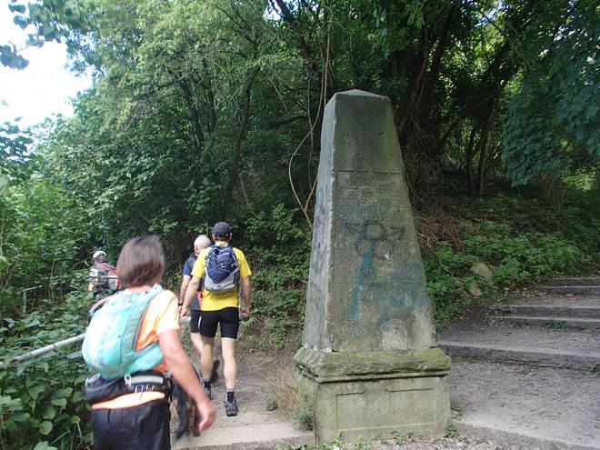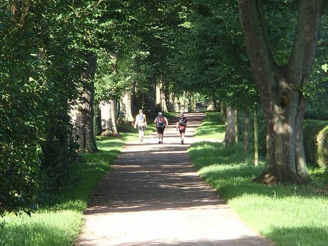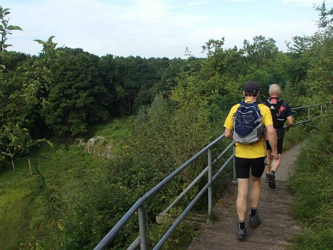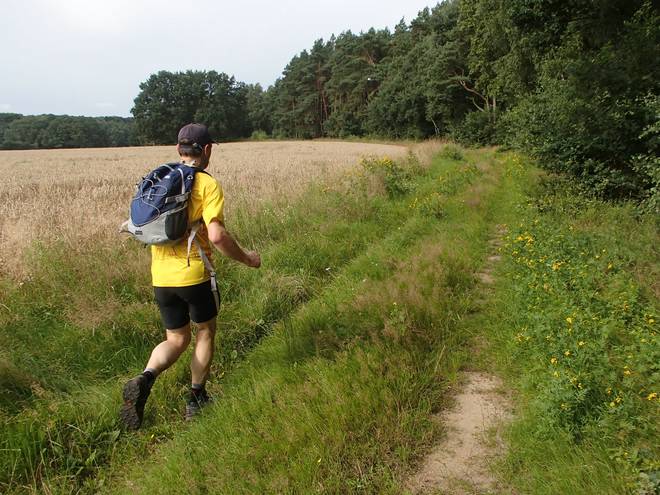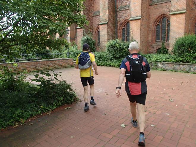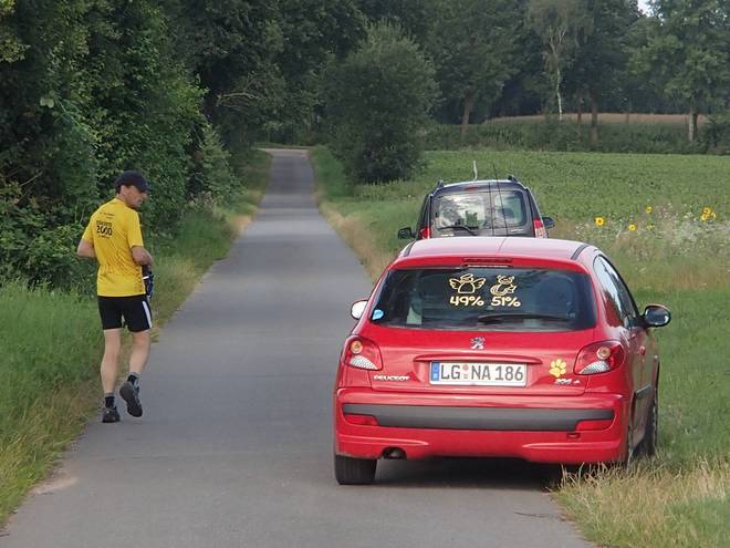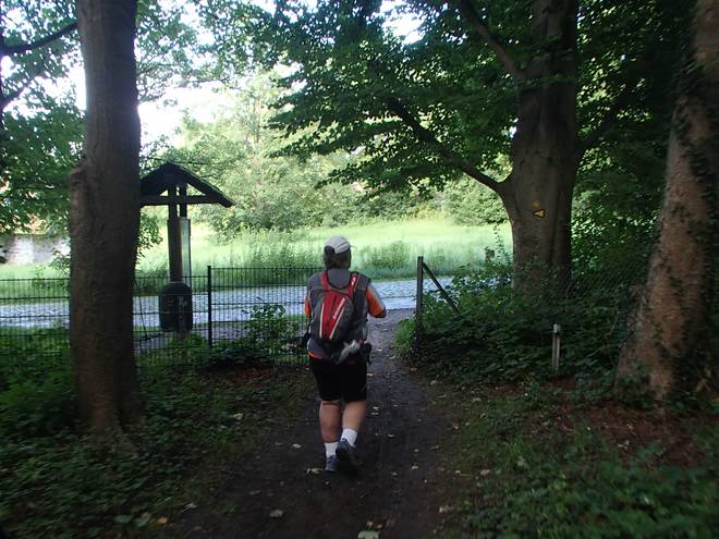 9.41 Uhr / Km 12,7 Merkwürdiges Navigieren. Ludger lief zwar voraus, guckte sich aber regelmäßig um, ob ich noch hinter ihm war. |