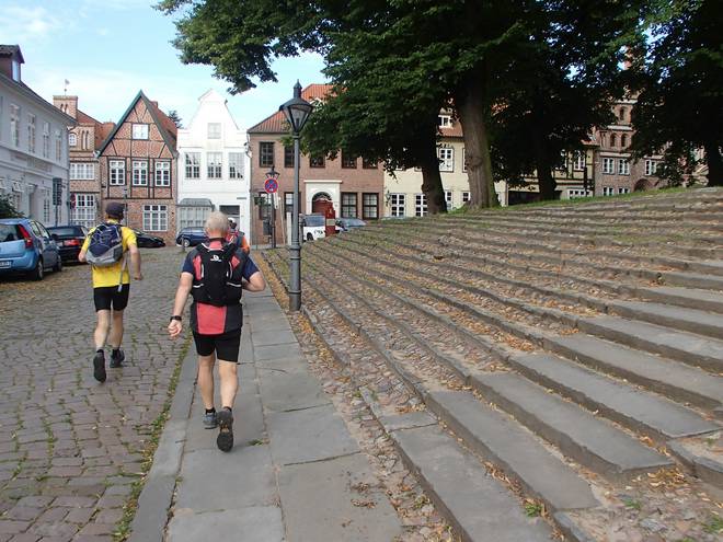 Lüneburg Kalkberg 8.08 Uhr / Km 0,5 Da waren die nicht wenigen Höhenmeter noch das kleinste Übel. |