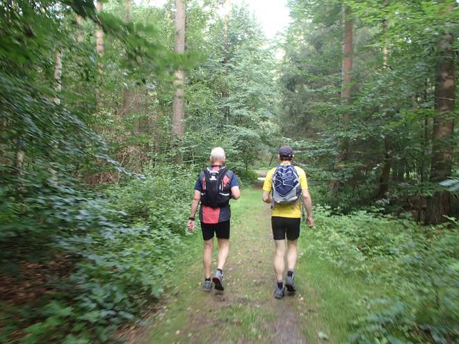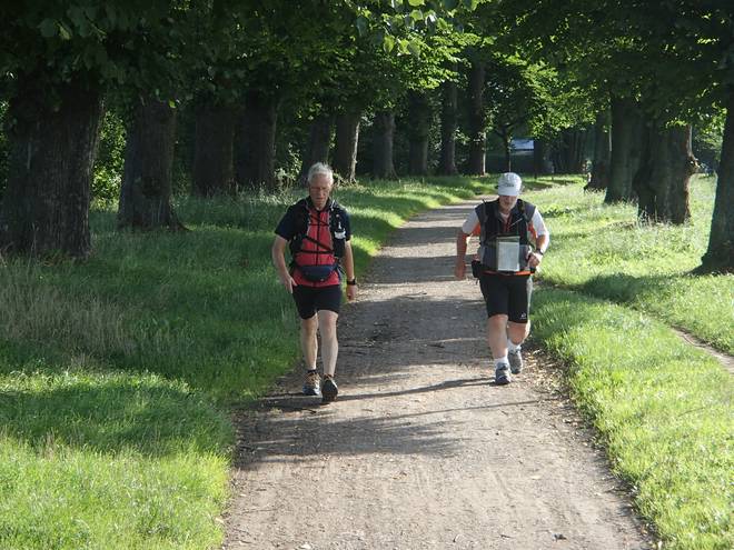 9.22 Uhr / Km 10,0 79 Minuten ungefähr für zehn Kilometer. Wenn ich lief, tat ich das weiter mit 6:40 Min/Km, aber inklusive aller Pausen kam ich effektiv nur auf 7:30 Min/Km. Und Ludger hatte ich auch wieder eingeholt. Er hätte schneller sein können, ließ sich aber immer wieder von mit einholen. |