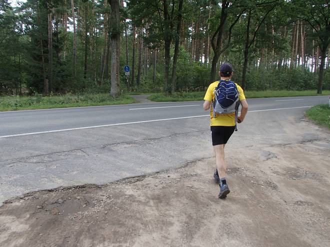 Schellenberger Weg 8.22 Uhr / Km 2,3 Ein wenig zögerte ich noch, ob ich nicht doch lieben die ganze Strecke bei Christian bleiben sollte. Der findet sich auch des nachts durch polnische Berge. |
