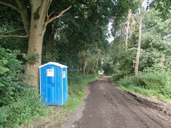 9.19 Uhr / Km 9,5 Wow. Toilette an der Strecke. Welch ein Luxus. Nur leider brauchte ich gerade keine. Hätte ich damit denn rechnen können?? |
