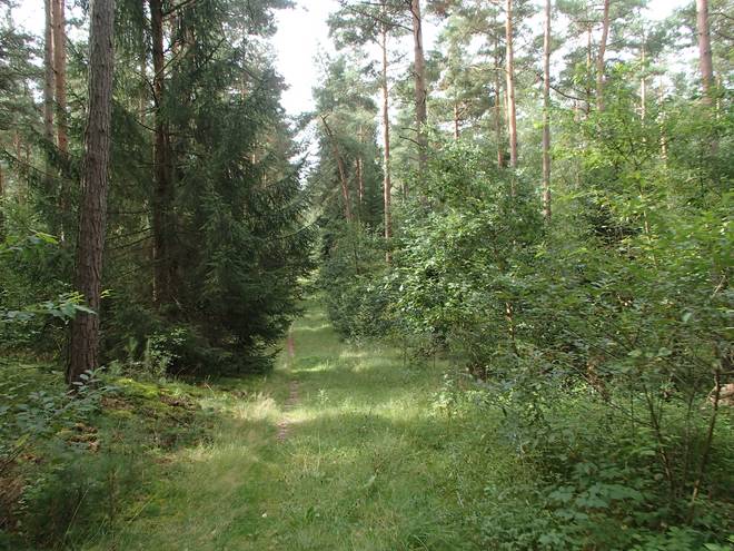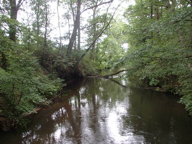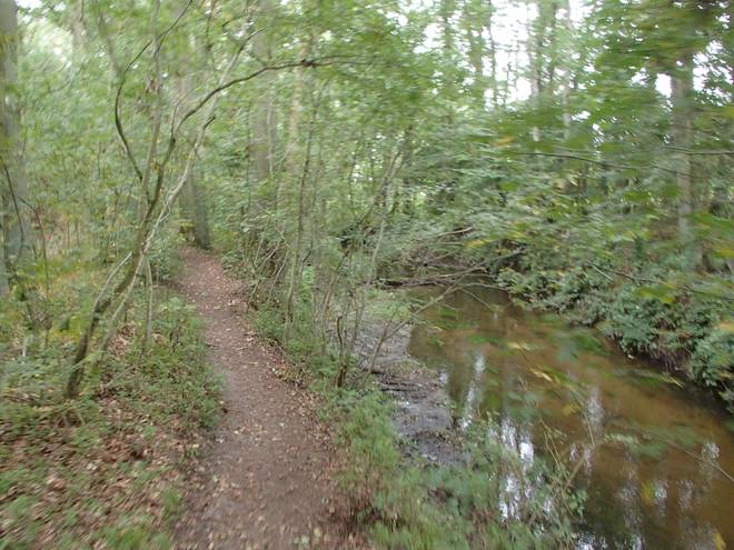 Luhe 10.19 Uhr / Km 18,1 Nun ging es ein Stück an der Luhe entlang. Das war ein schwieriges Stück was die Wegfindung anging. Immer wieder wechselte der Weg und einfach dem Flußlauf folgen ging auch nicht. |