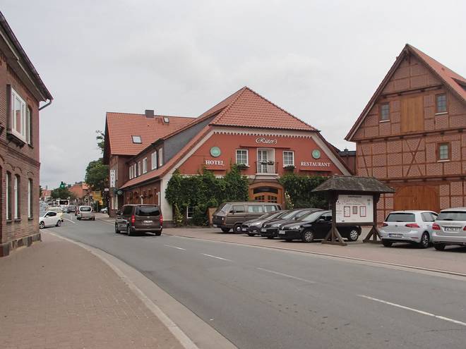 Salzhausen Hauptstraße 10.41 Uhr / Km 21,5 Nach so viel Wald und Wiese kam man sich hier vor wie in einer Großstadt. |