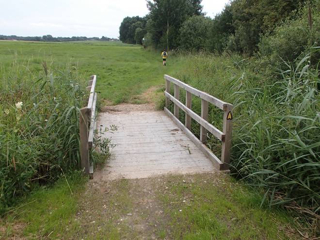 Ostende 12.13 Uhr / Km 34,9 Und verlaufen. Ich hatte es nicht einmal bemerkt. Eine sichtbare Abzweigung habe ich nicht gesehen, außerdem sah der Weg hier absolut richtig aus. Ich hatte so sehr keinen Zweifel, daß ich nicht einmal die Strecke auf dem Handy prüfte, wie ich es sonst an so ziemlich jeder Abzweigung tat. |