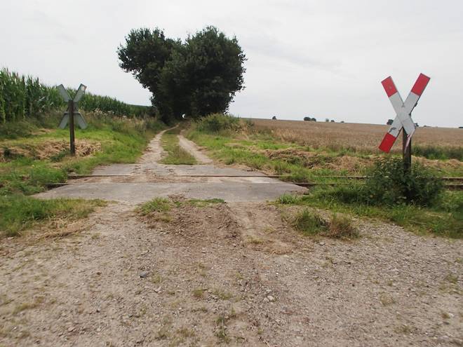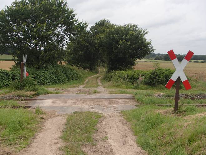Soderstorfer Straße 12.08 Uhr / Km 34,2 Die Bahnstrecke kannte ich schon von Kilometer 26,3. Nun waren es nur 3,4 Kilometer bis nach Döhle. Die Schienen waren aber nicht die offizielle Strecke. |