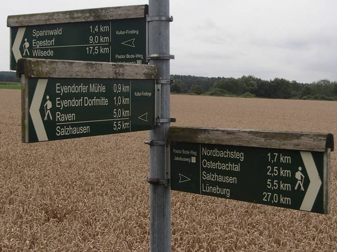 Egestorf Sudermühler Weg 12.37 Uhr / Km 37,7 Nun tauchte auch der Wilseder Berg auf den Schildern auf. |