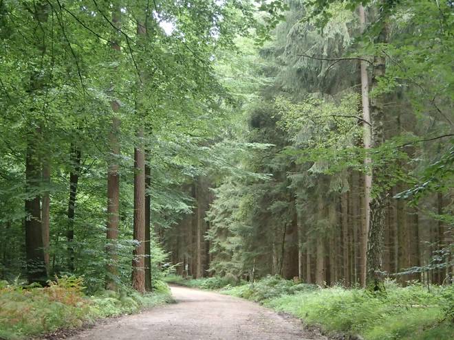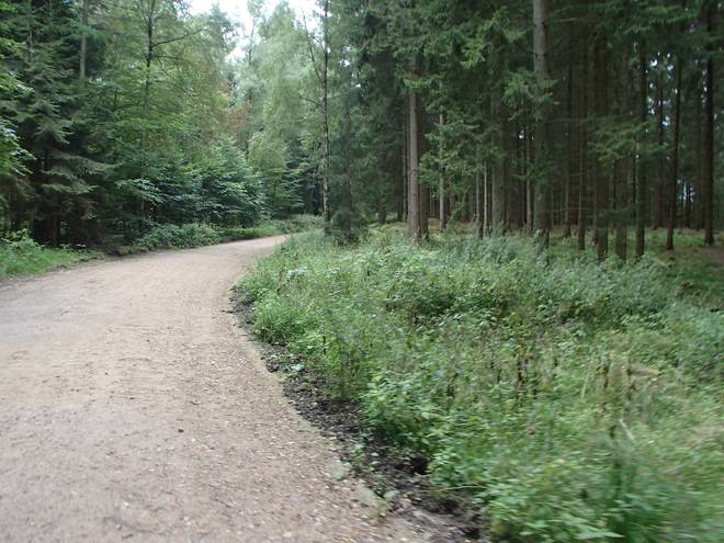 11.31 Uhr / Km 28,4 Nun ging es durch einen Wald südlich von Lübberstedt. |