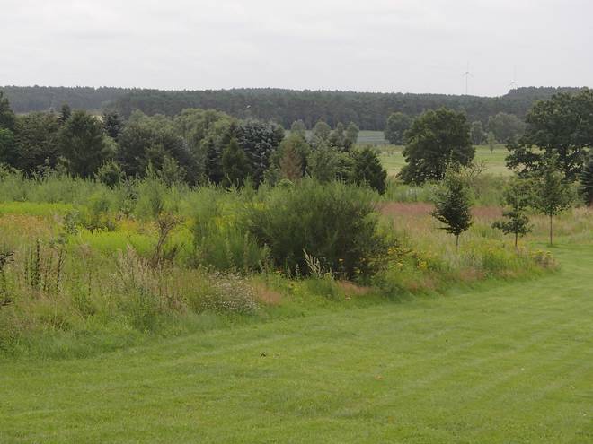 13.02 Uhr / Km 41,6 Irgendwie hatte ich mir die Heide anders vorgestellt. Hoffentlich kam bald einer und erzählte mir, die Heideblüte hätte noch nicht begonnen. So war das eher enttäuschend. |
