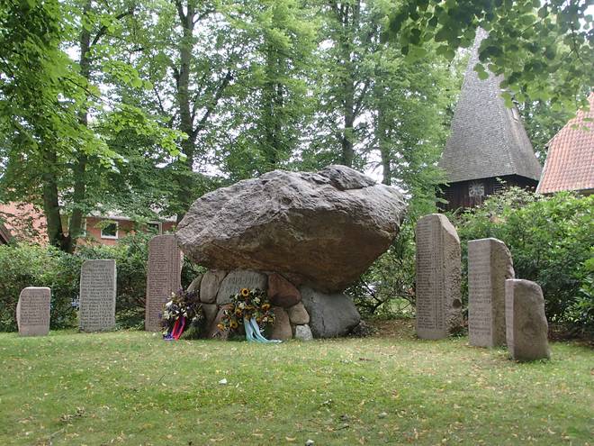 13.05 Uhr / Km 41,9 Ein Gedenkstein auf der Lüneburger Heide. |