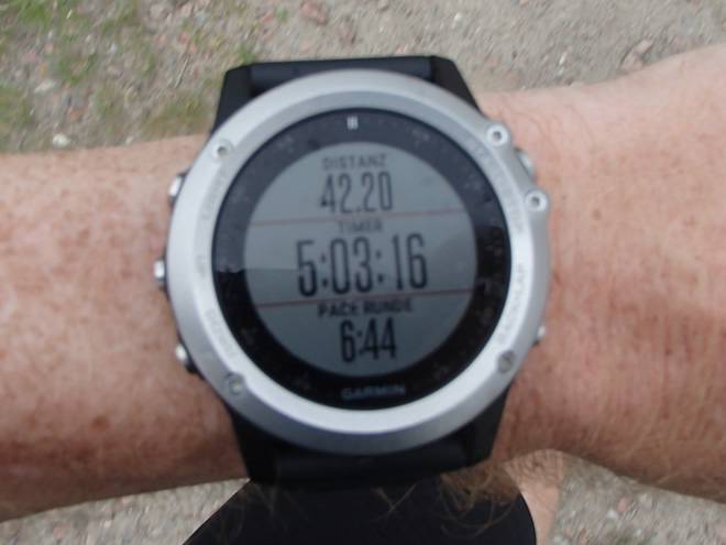 13.07 Uhr / Km 42,2 Marathon in 5:03:16 Stunden. Nur 3:33 Minuten schneller als auf dem Rennsteig. Dieses Gesuche der Wege kostete fast genauso viel Zeit wie die vielen Thüringer Höhenmeter. |