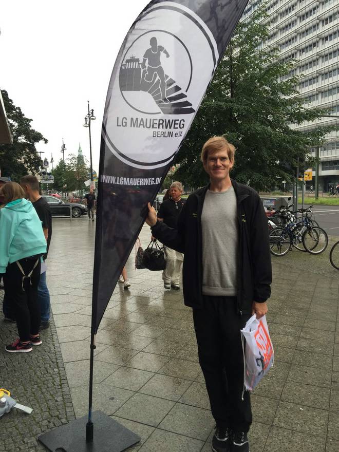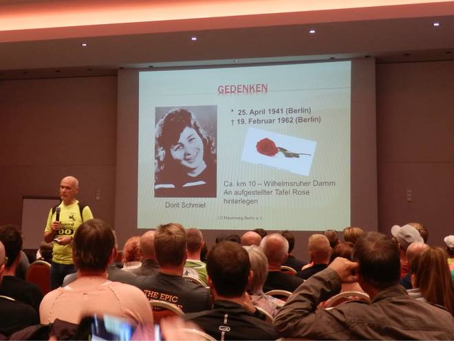 Hotel H4 am Alexanderplatz 18.09 Uhr Jeder Mauerweglauf ist einem Maueropfer gewidmet. 2017 war dies Dorit Schmiel, die 1962 bei einem Fluchtversuch von "DDR"-Grenzsoldaten erschossen wurde. |