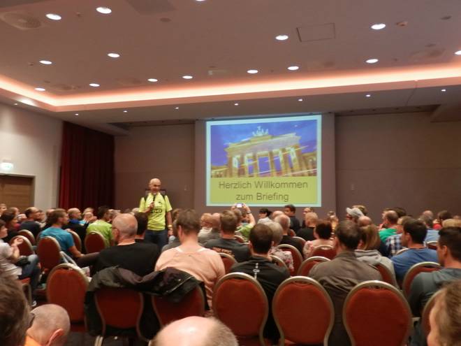 Hotel H4 am Alexanderplatz 18.03 Uhr Die Teilnahme am Briefing war Pflicht für alle Läufer und auch alle Begleiter. Das Briefing gab es auch noch in Englisch und für Staffeln. |