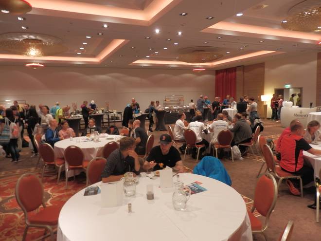 Hotel H2 am Alexanderplatz 19.00 Uhr Nach dem Briefing ging es weiter zum 100 Meilen Buffet (der Pasta-Party). Für 100 Meilen war das sehr übersichtlich. Aber für eine solche Distanz kann man eh nicht im voraus essen. |