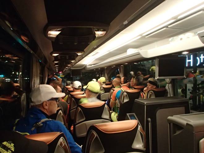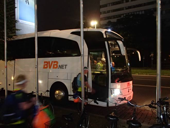 Karl-Liebknecht-Straße 4.59 Uhr Und obwohl der Bus schon bald voll war, warteten wir bis 5.20 Uhr mit der Abfahrt. Ich hätte doch zu Fuß gehen sollen. Es waren ja nur 2,4 Kilometer bis zum Start. |
