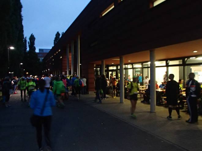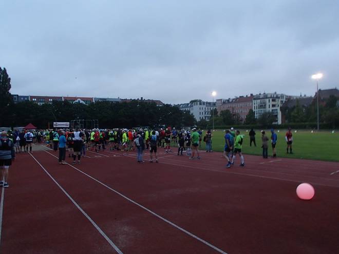 Friedrich-Ludwig-Jahn-Sportpark 5.33 Uhr 27 Minuten vor dem Start war ich endlich vor Ort. Frühstück konnte ich in die Tonne treten, würde Glück brauchen, es noch rechtzeitig an den Start zu schaffen. |
