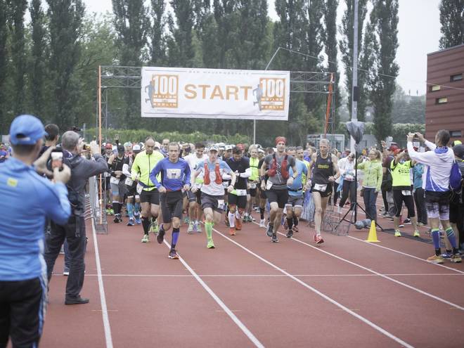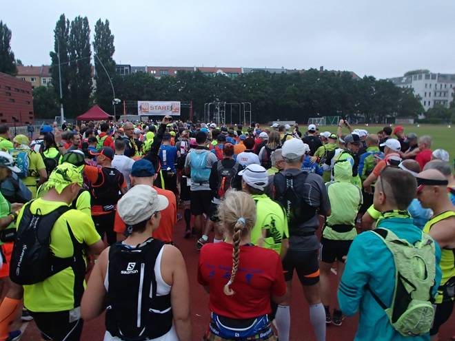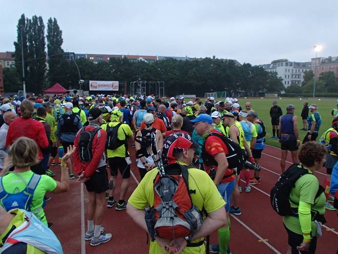 Friedrich-Ludwig-Jahn-Sportpark 6.00 Uhr Vorne wurde schon am Start richtig Tempo gemacht. Der Streckenrekord lag immerhin bei 13:06 Stunden. Das sind im Schnitt 4:51 Min/Km. Und das fast vier Marathons lang. Foto: Headlight Pictures |