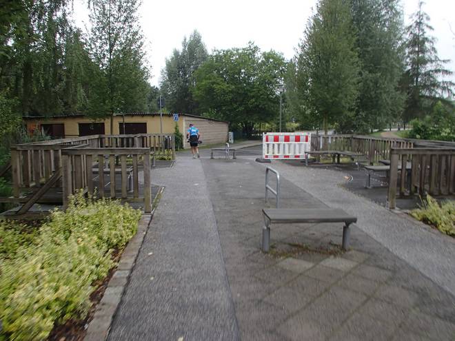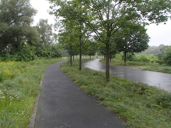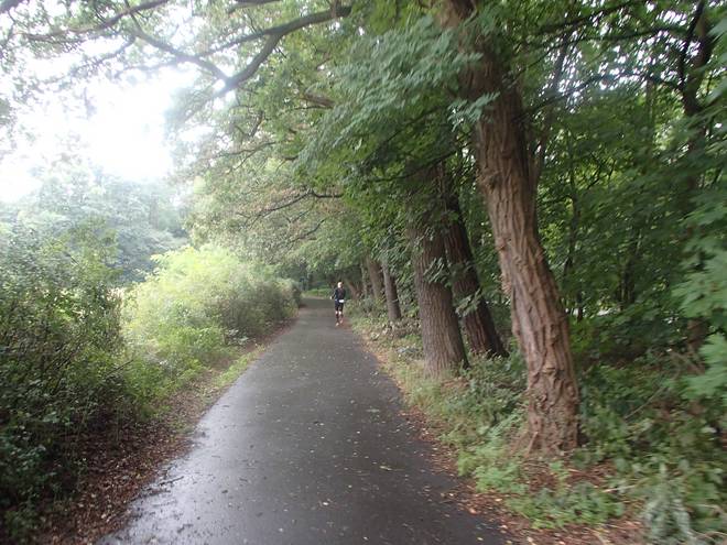 Uferpromenade 10.23 Uhr / Km 36,5 Vom Kanal, an dessen Ufer wir entlang liefen, war wenig bis gar nichts zu sehen. |