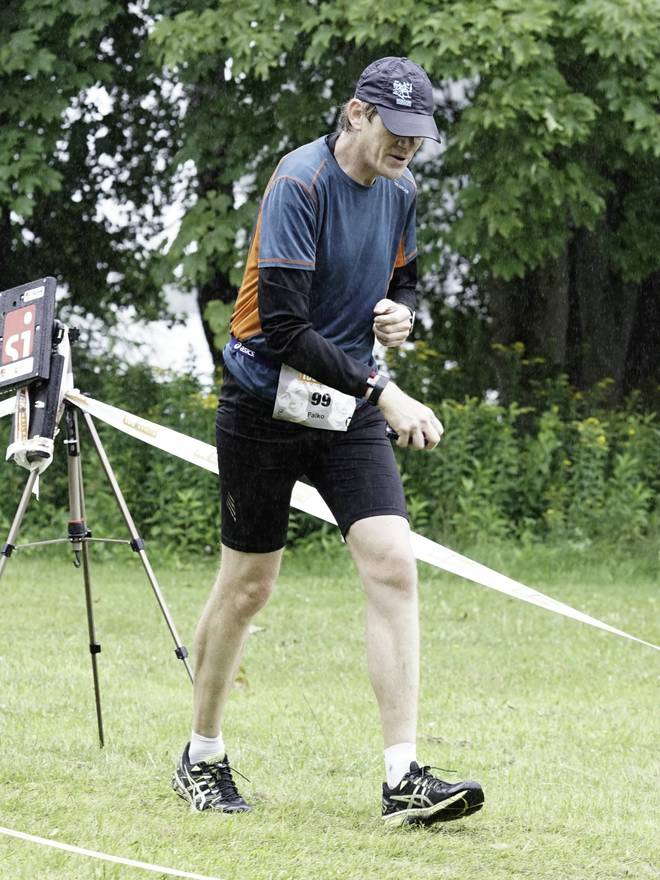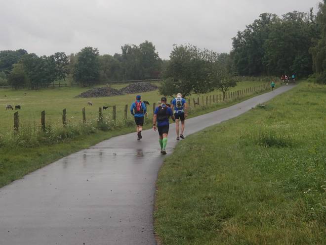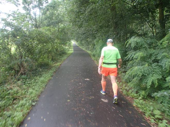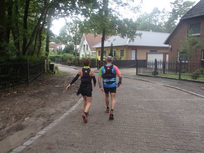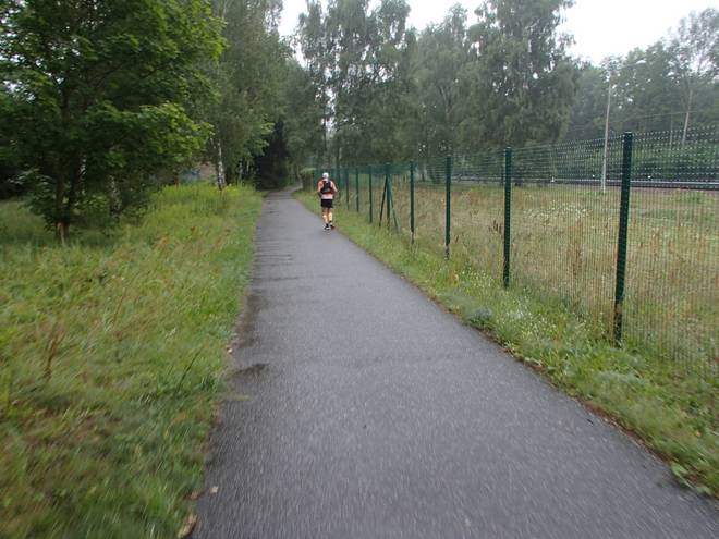 Königswald 14.30 Uhr / Km 67,5 Das Tempo war weiter gut. Ich lief kontrolliert langsam. Die Befürchtung, ich könnte ohne Romy und mit Musik auf den Ohren zu schnell werden, war unbegründet. |
