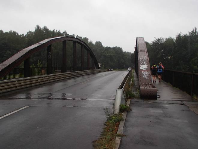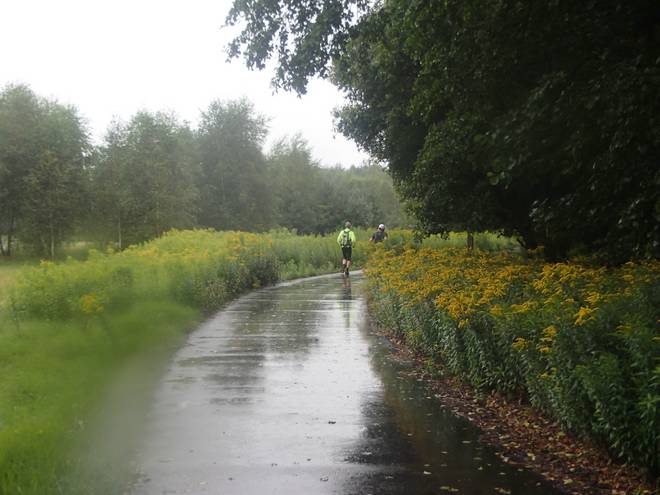 Horst-Müller-Straße 10.14 Uhr / Km 35 Das Willkommen-Wetter für unser Duo-Unternehmen war mäßig. Es nieselte zwar nur, aber das recht ergiebig. |