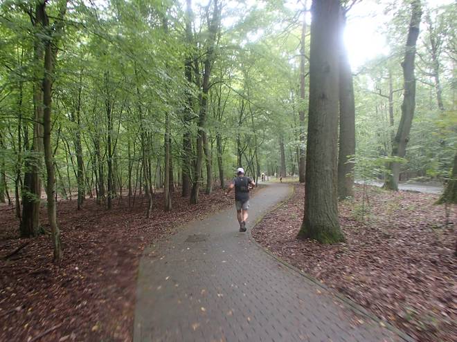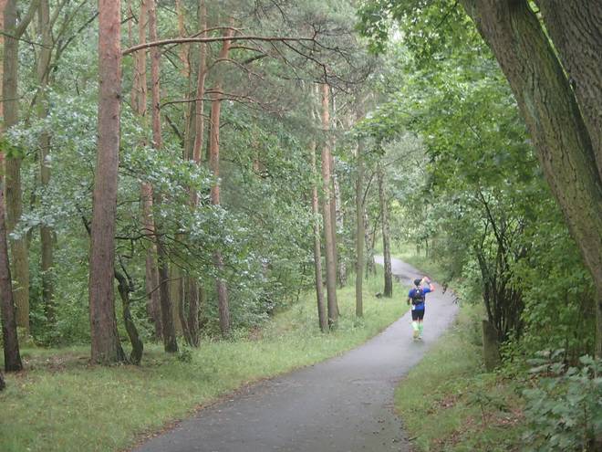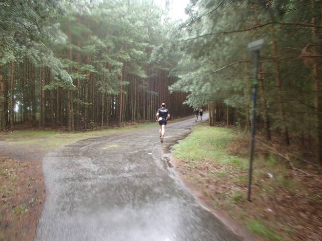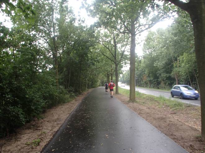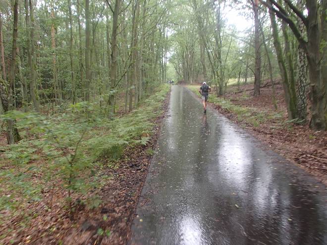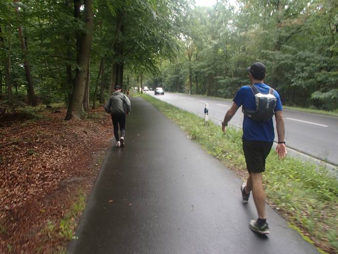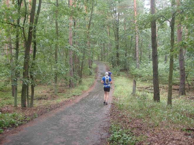 Spandauer Forst 11.42 Uhr / Km 47,5 Eine Weile liefen wir wieder durch den Wald. Der Regen hatte etwas nachgelassen. |