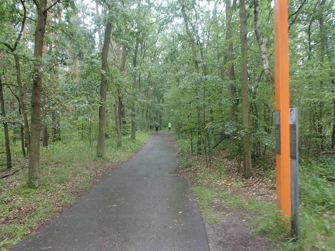 Königswald 14.34 Uhr / Km 68 Nun hatte ich eine ganze Weile schon keinen anderen Läufer mehr gesehen. Ohne die guten Markierungen hätte ich mich längst auf dem falschen Weg gewähnt. |