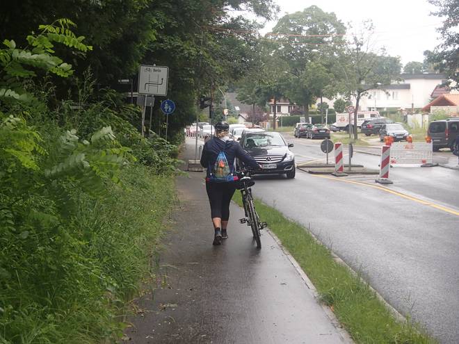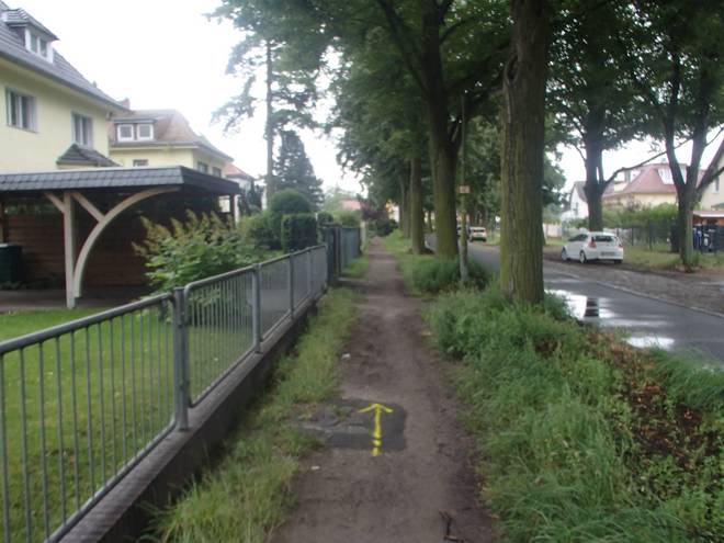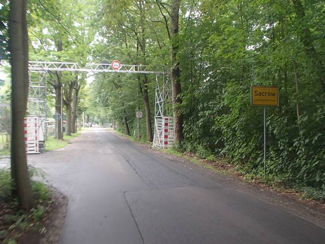 Kladower Straße 14.47 Uhr / Km 70 Nun erreichte ich Sacrow. Der nächste Wechselpunkt konnte nicht mehr weit sein. |