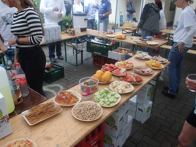 Hafenstraße 10.07 Uhr / Km 34 Bis 11.45 Uhr mußten wir den Verpflegungsstand verlassen haben. Das war das Zeitlimit. Das hatte ich locker geschafft. |