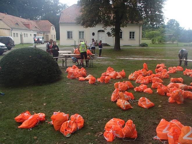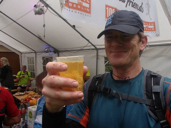 Schloß Sacrow 14.54 Uhr / Km 71,02 Der zwölfte Verpflegungsstand war gleichzeitig der zweite Wechselpunkt. Betreut wurde der Stand durch das Team Simple & Fun. Die Cut off Zeit war hier 19.30 Uhr. Da hatte ich ein gutes Polster vorgelegt. |
