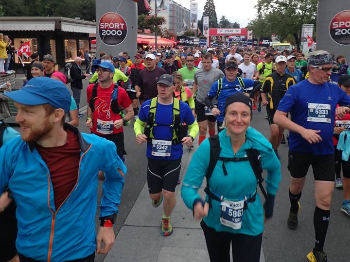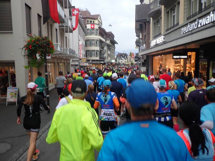 Höheweg Interlaken 8.50 Uhr / Km 0,1 Vor dem Start war ich zwar nervöser als normal, aber mit dem Start legte sich das recht schnell. |