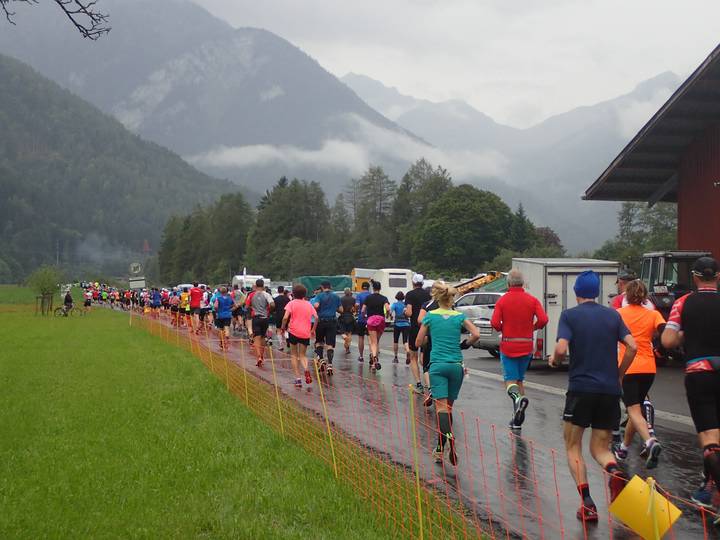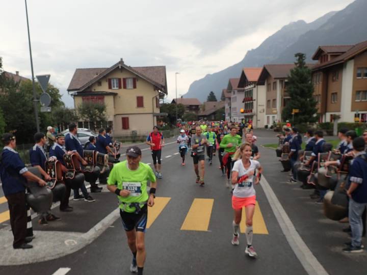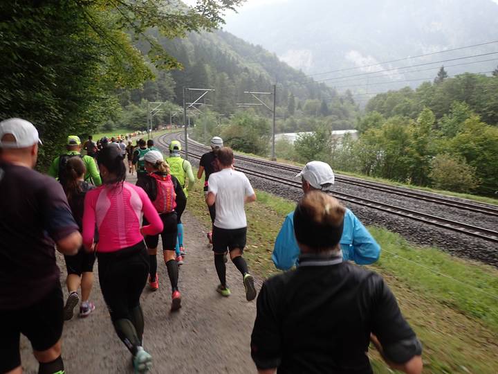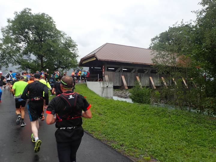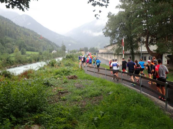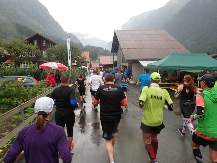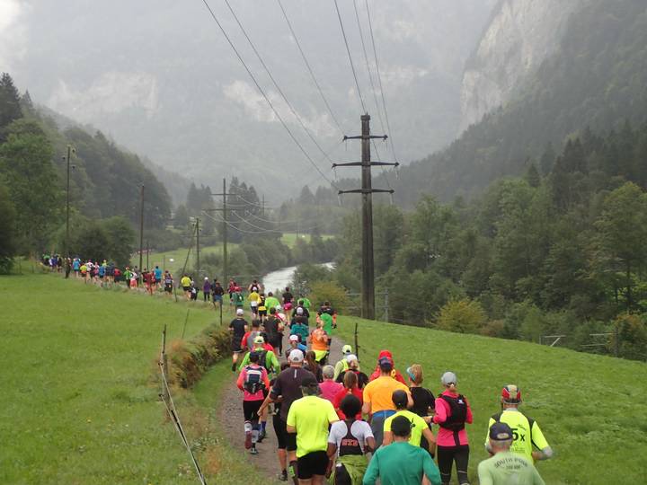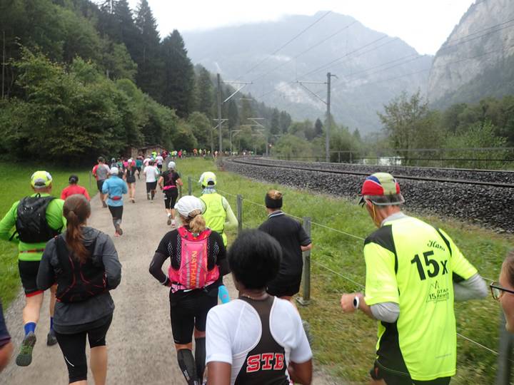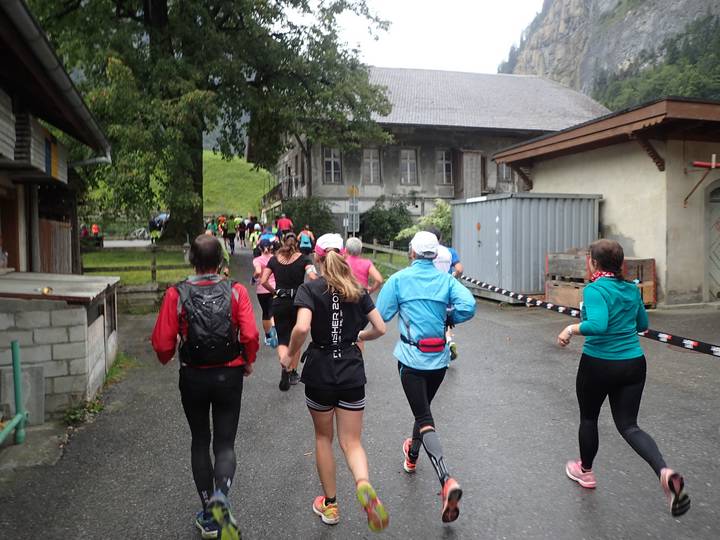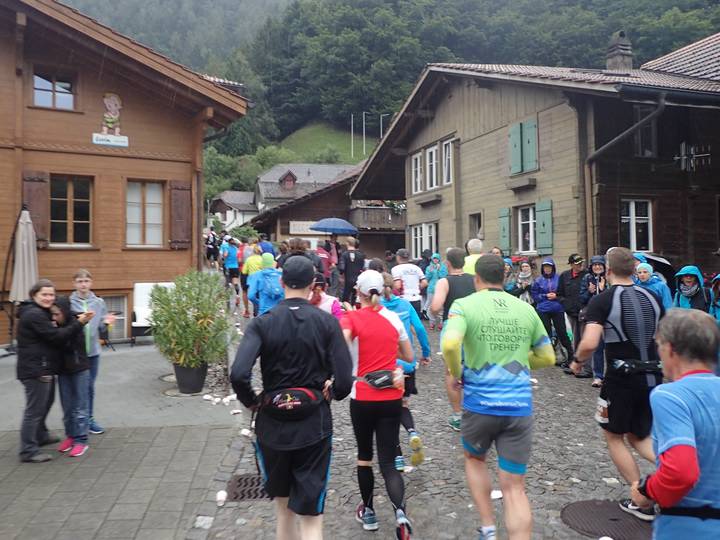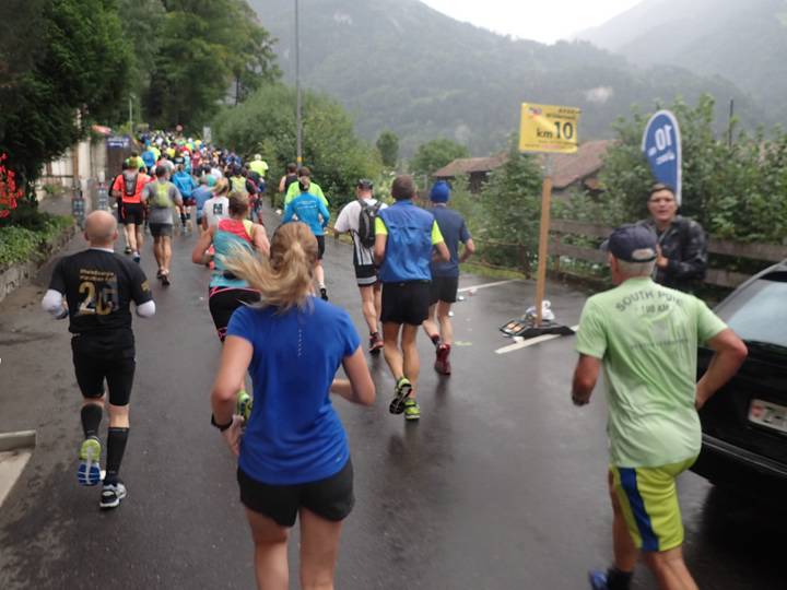 Hinter der Egg 10.23 Uhr / Km 15,3 Ich war hinter dem gedachten Zeitplan ein wenig zurück, aber das machte mich nicht nervös. Interessant würde es erst ab Kilometer 25 werden, wenn es an den Anstieg hinauf zum Jungfrau ging. Wenn ich bis dahin mit der Masse locker würde mitlaufen können, wäre alles in Ordnung. |