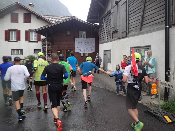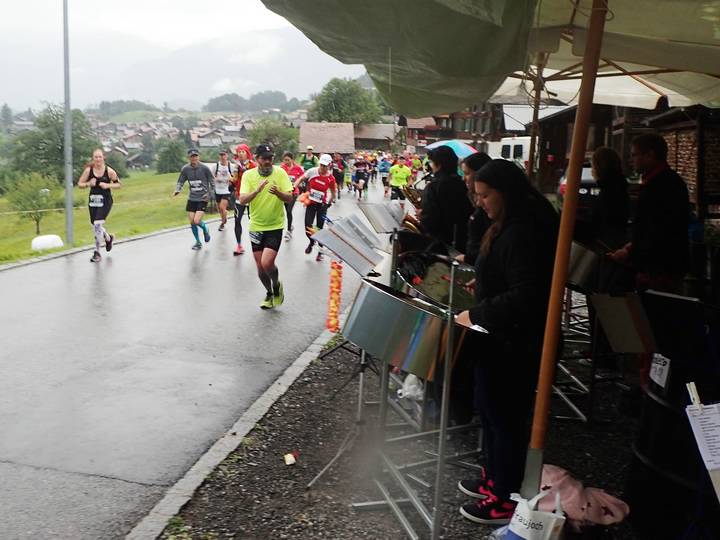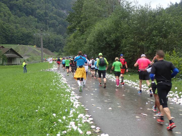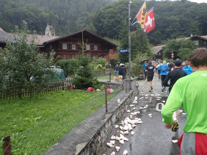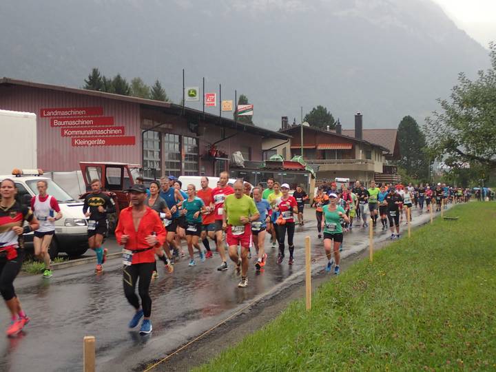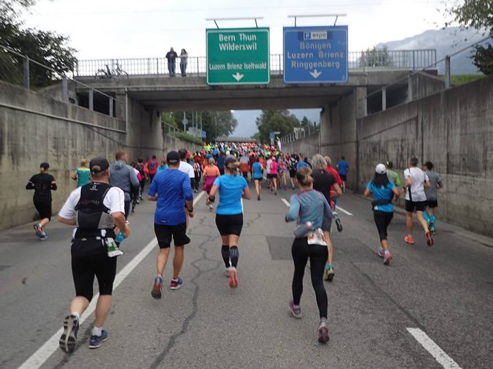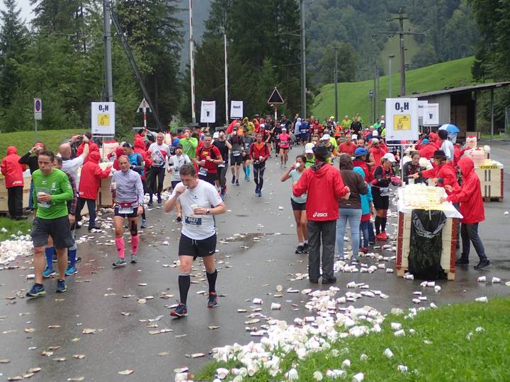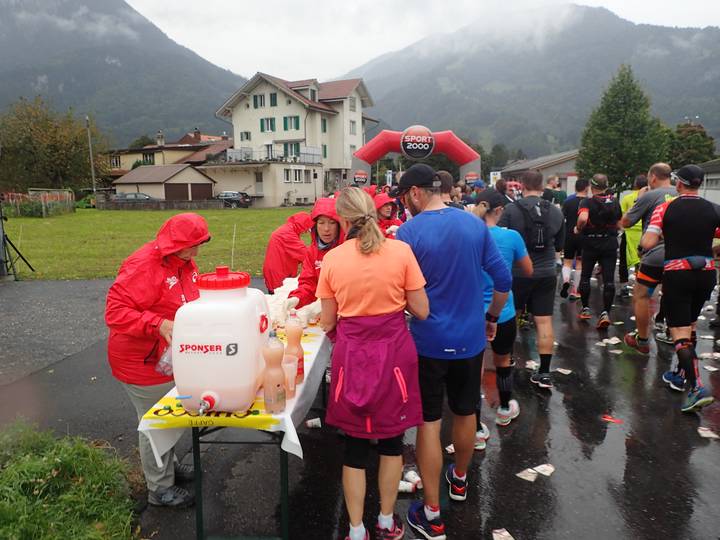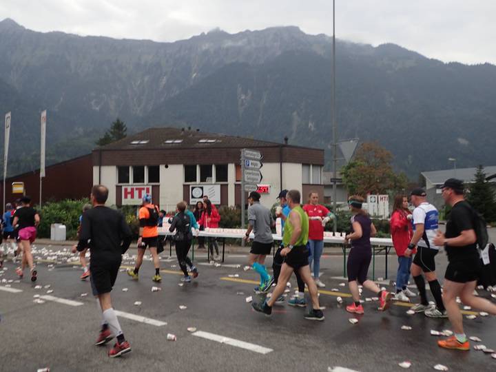 Untere Bönigstrasse Interlaken 9.19 Uhr / Km 5,1 Der erste Verpflegungsstand. Davon gab es insgesamt elf. Fünf davon auf dem letzten Drittel. |