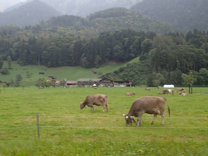 Gsteigstrasse Bönigen 9.33 Uhr / Km 7,5 Nun wurde es ländlicher, aber auch nasser. Ein noch leichter Regen hatte eingesetzt. |