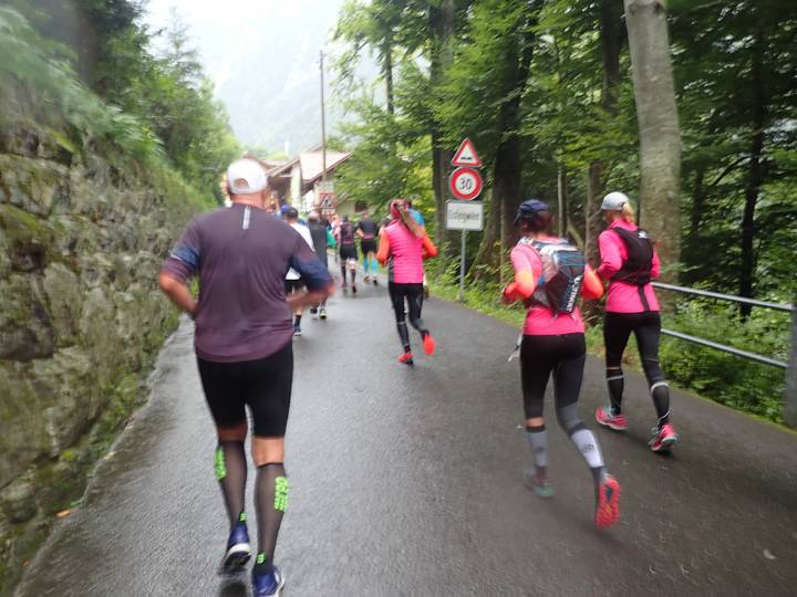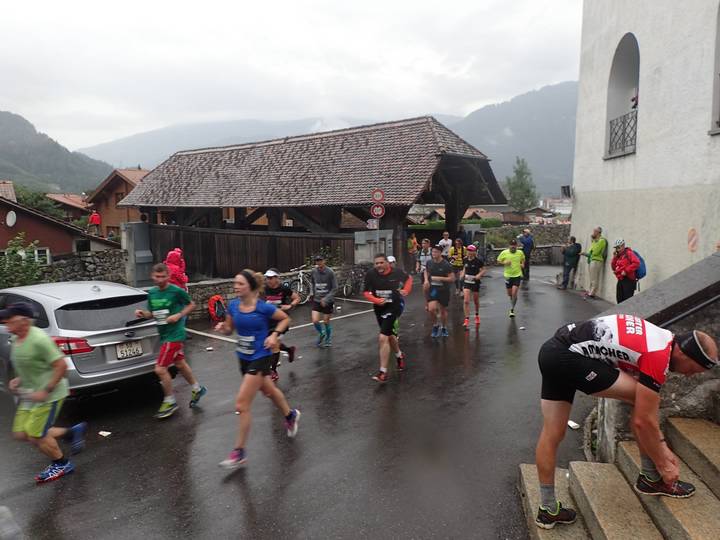 Gsteigstrasse 9.35 Uhr / Km 7,8 So rein lauftechnisch wäre es mir auch egal gewesen, aber durch den Regen wurde die Fernsicht beeinträchtigt. |