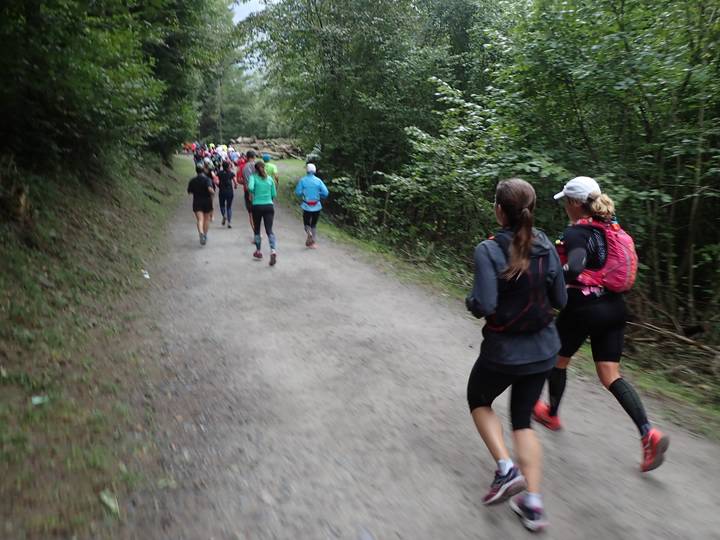 Buchenstutz 10.06 Uhr / Km 12,6 Auf den nun wieder schmaleren Wegen war es vorbei mit dem freien Laufen. Hier orientierte man sich einfach an der Masse. |