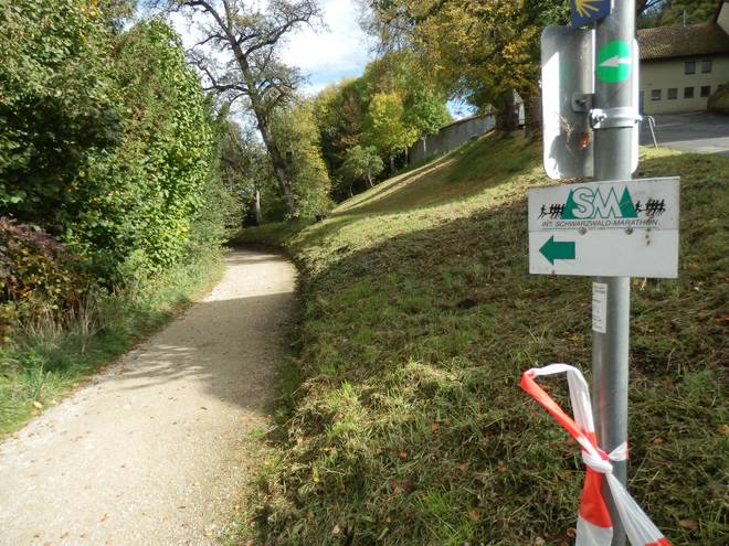 Buchhalde Friedhofsweg 13.42 Uhr Der hier ausgeschilderte Weg gehörte nicht zum Marathon. Aber der 10-Kilometer-Lauf kam hier vorbei. |