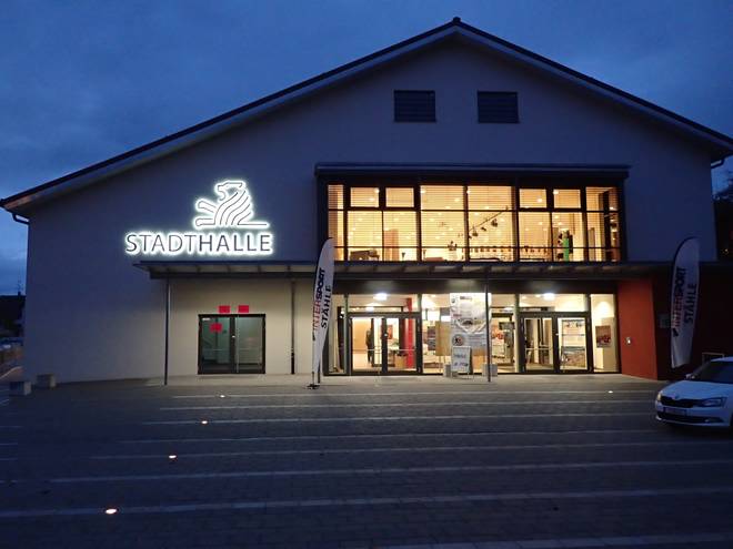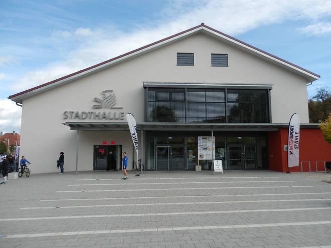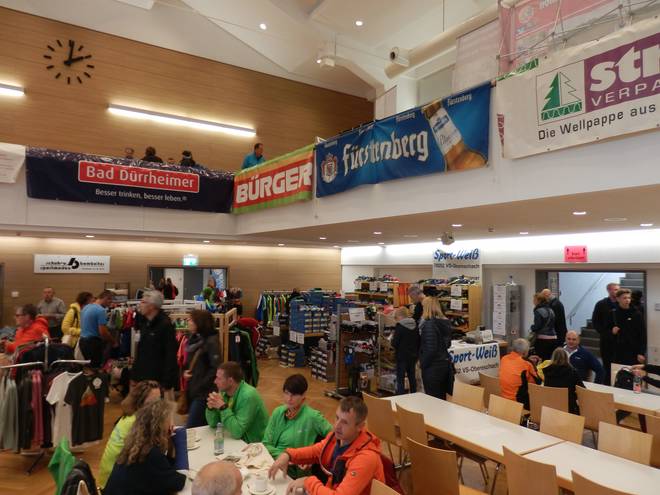 Stadthalle Bräunlingen 13.48 Uhr Das Veranstaltungszentrum war die Stadthalle. Erstaunlich wenig los. Immerhin starteten doch in Kürze die Schüler- und die Jugendläufe. Außerdem stand noch der Zehn-Kilometer-Lauf auf dem Plan. |