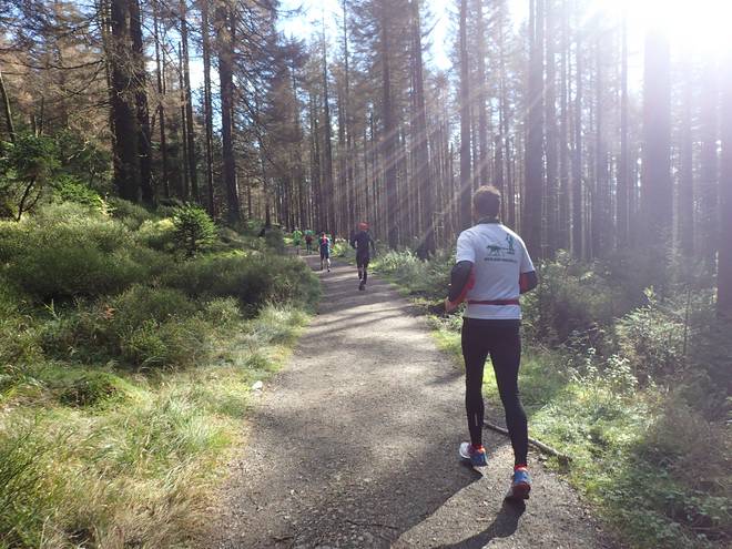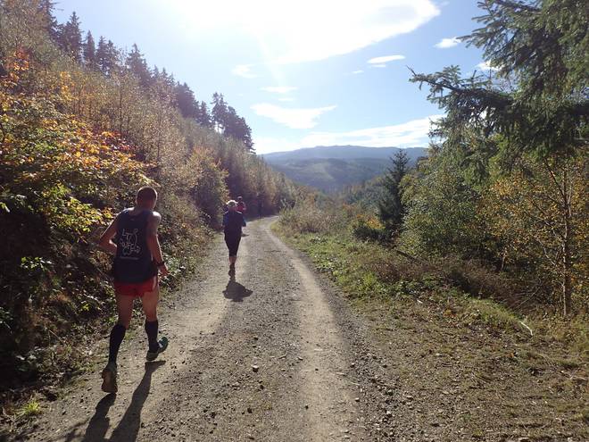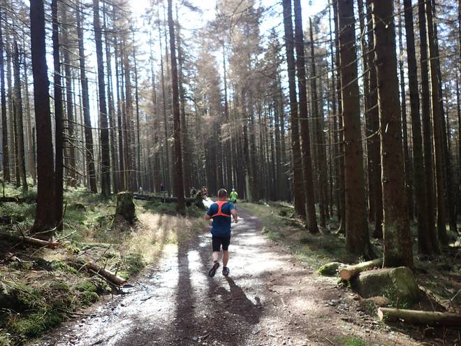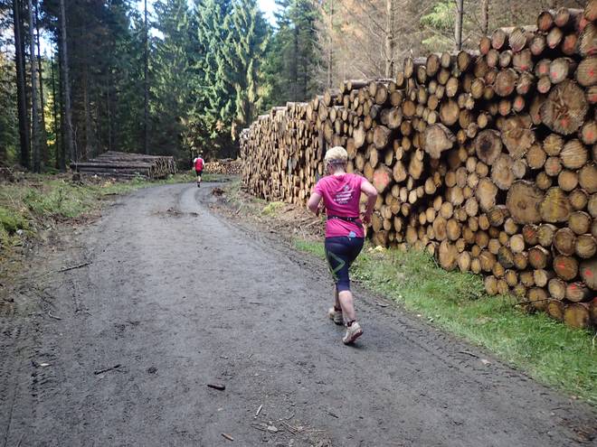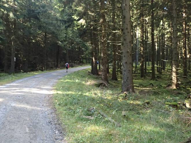 Glashüttenweg 11.59 Uhr / Km 23,4 So liebe ich Laufen. Wald, Sonne, Weg... schön. |