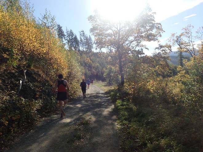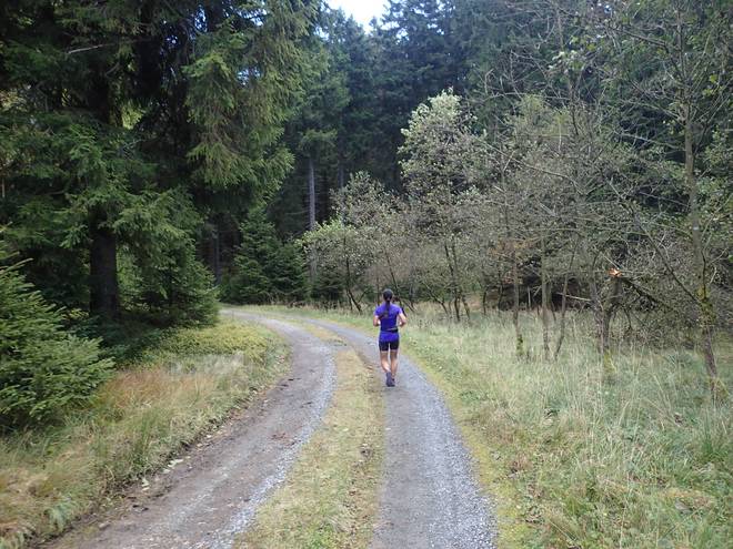 Glashüttenweg 12.29 Uhr / Km 28,2 Wären da nicht zwischendurch immer wieder diese Gefälle gewesen, es wäre ein echter Traumlauf gewesen. |