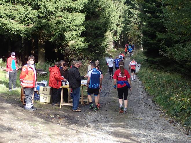 Glashüttenweg 11.57 Uhr / Km 23,1 Gleich am Waldesrand lag der vierte Verpflegungsstand. |