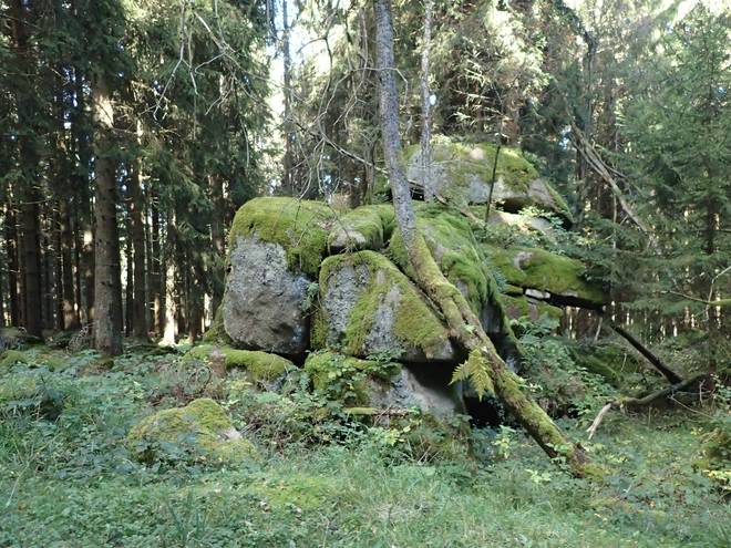 Renneklippen 13.08 Uhr / Km 34,2 Weiter ging es parallel zur Steinernen Renne, von der wir allerdings nichts zu sehen bekamen. So wie von etlichen anderen Sehenswürdigkeiten, an denen wie mal mehr mal weniger entfernt vorbei liefen. |