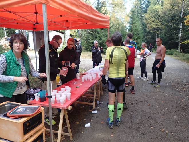 Oberförster-Koch-Weg Mönchsbuche 13.22 Uhr / Km 36,6 Ich hatte (und habe auch immer noch nicht) keine Ahnung, was da ausgeschenkt wurde, aber es schmeckte gar nicht schlecht. Wobei ich bei Kilometer 36,6 allgemein wenig schmecke. |