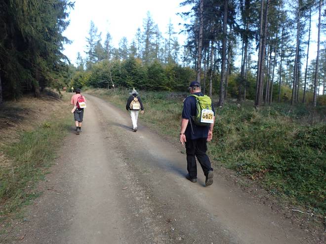 Saneltal 13.25 Uhr / Km 37,0 Nun hatten wir auch wieder Wanderer der 25-Kilometer-Distanz auf der Strecke. Sie hatten 45 Minuten mehr auf ihrer Uhr, wir 17,1 Kilometer mehr in den Beinen. |